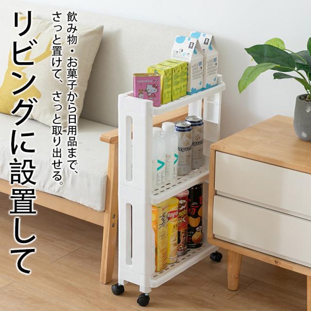 気になる食器棚の横やレンジ台の脇など、ちょっとした隙間にスッと収納できます。いくらあっても足りないキッチンの収納スペース。