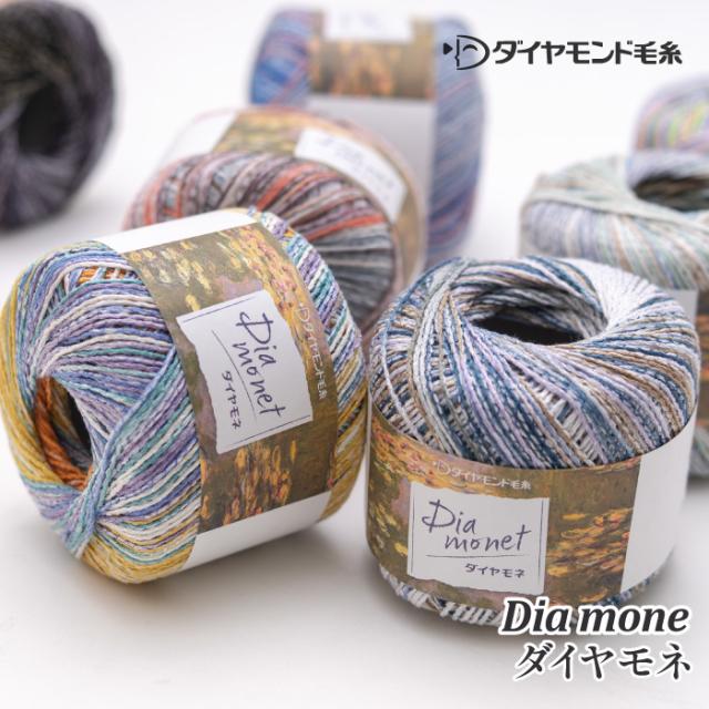 | ダイヤ毛糸2026年春夏新商品、ダイヤモネは、印象派絵画の筆のタッチを思わせる色取り豊かなプリントヤーンです。 コットンをベースに、麻のようなタッチを持つポリエステルを組み合わせることで程良いシャリ感を出しています。 糸の仕上げにツヤのある細いレーヨン糸を巻くことで、より陰影のある色の表情を作っています。 クロードモネの作品のように、多くの色がかすれながら混ざり合いうつろう、新しいプリントの表現です。 程良い糸のハリ感が夏らしい透かし模様に効果的で、涼しげな色合いをいっそう引き立てます。 |