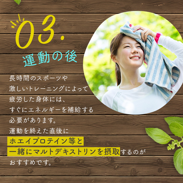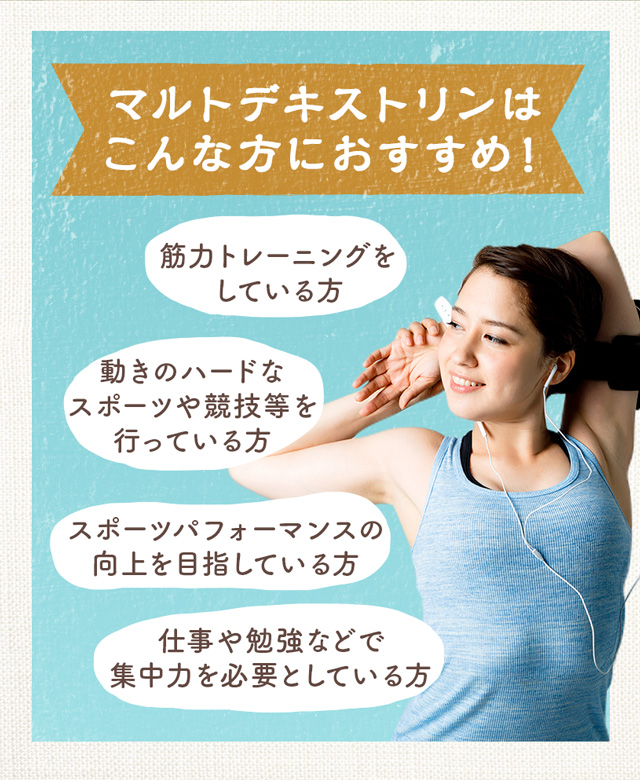 国内製造のマルトデキストリンは、アスリートの間で人気の炭水化物源です。吸収が早く、すぐにエネルギーに変わるので、運動時のエネルギー補給におすすめの炭水化物(糖質)サプリメントです。