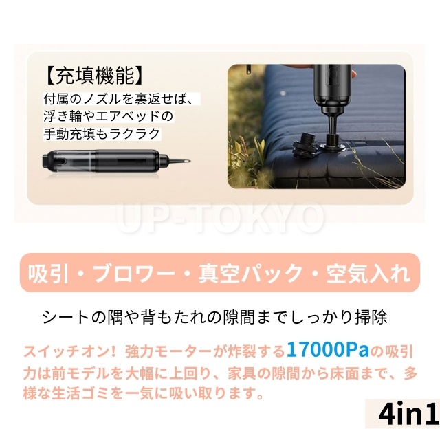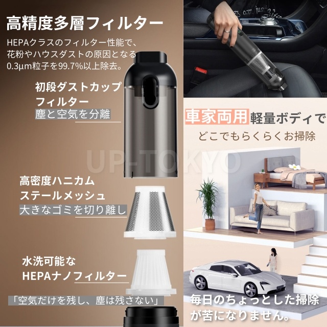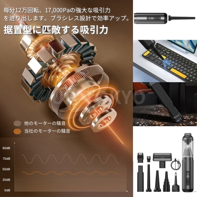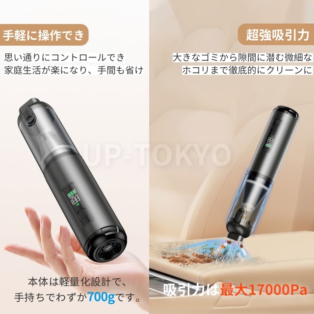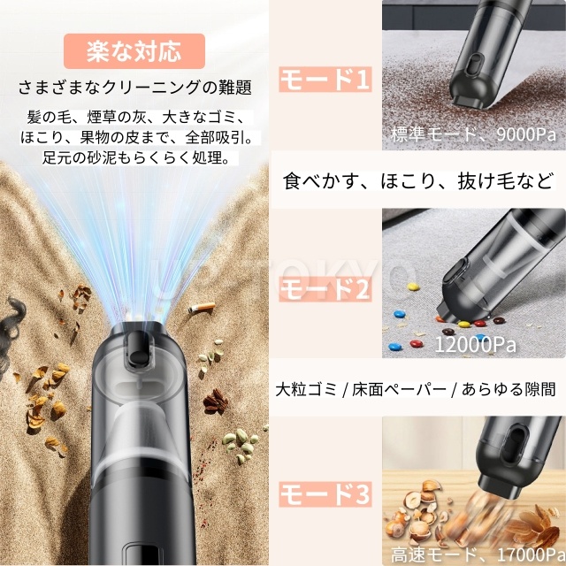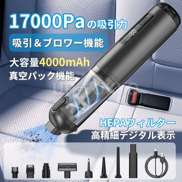 掃除機 ハンディ 静音 強力 ハンディクリーナー 3段階調整可 17000Pa吸引力クリーナー車家両用 コードレス 小型 車載 洗えるフィルター ペットの毛 猫砂 食べこぼし 狭い 隙間 便利 水洗い 充電式