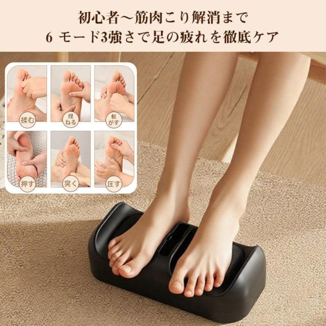 6種類の按摩モードと3段階の強さ調整に対応。自分の好みや疲れ度合いに合わせて自由設定可能で、リモコン付きで本体操作・リモコン操作の二通りから選べ、使い勝手が抜群です。