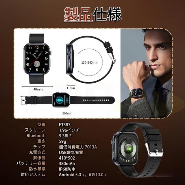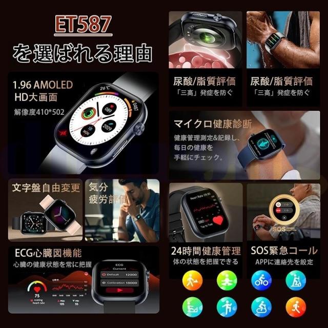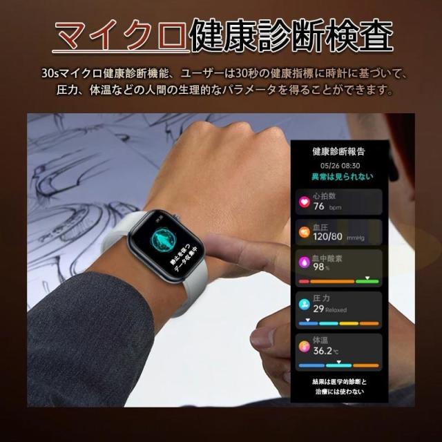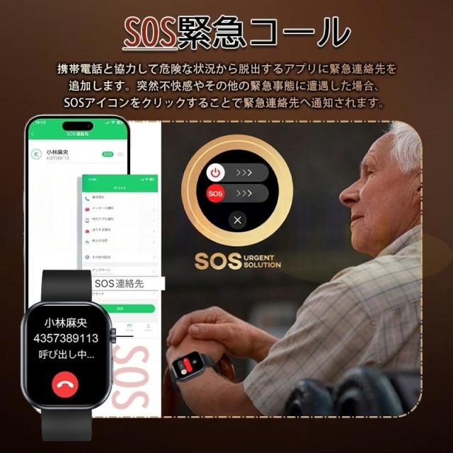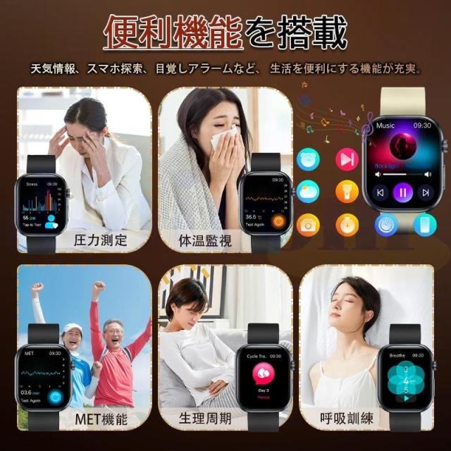 スマートウォッチ 日本製センサー 血糖値 血圧測定 心電図 通話機能 心拍数 睡眠 呼吸 体温 尿酸 血中酸素 24時間健康管理 着信通知 SOS機能 長座注意 計歩 音楽