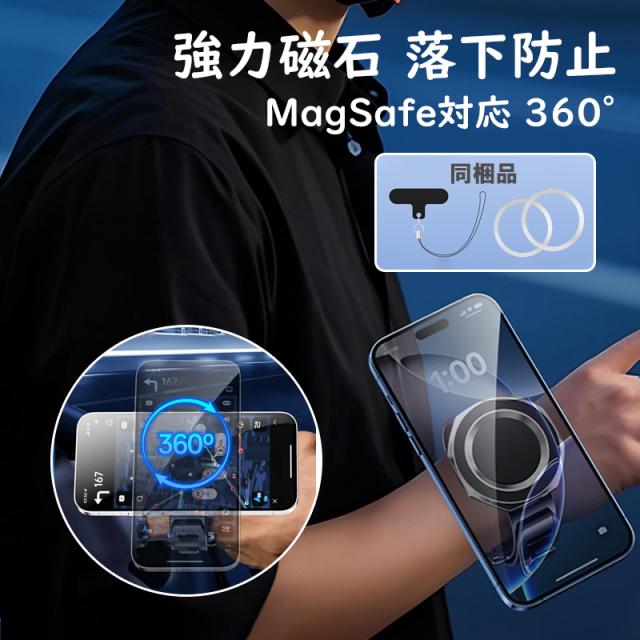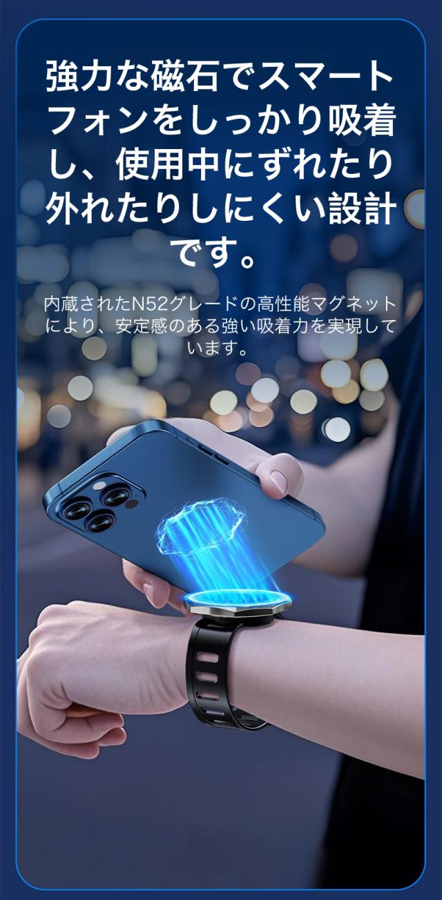 スマホホルダー 手首 バンド MagSafe スマホスタンド 腕時計式 シリコン素材 マグネット式 横置き 縦置き 360度回転 安定固定 サイクリング スポーツ 持ち運び 便利