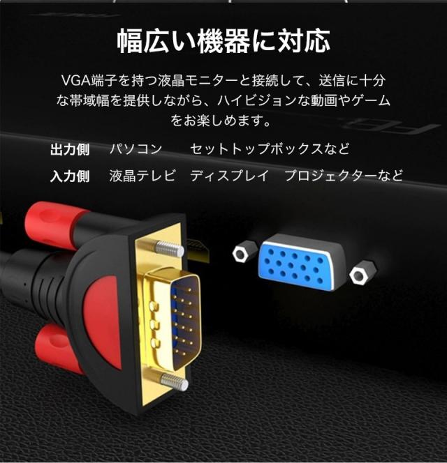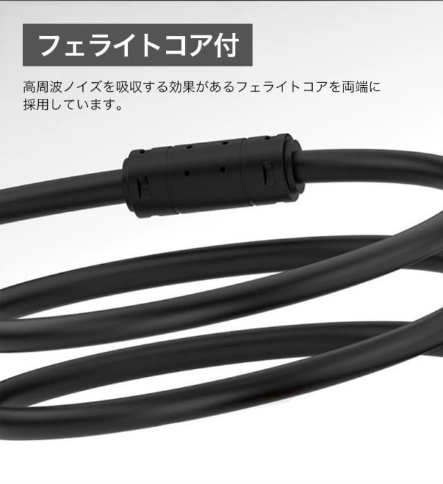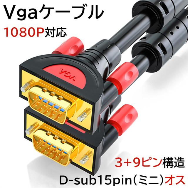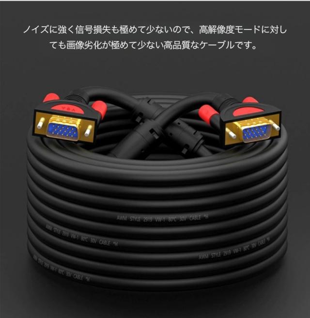 VGA オス -VGA オス ケーブル 5m 3m 1.5m vga ケーブル 3+9 ノイズ対策 アナログRGBケーブル D-Sub15ピン ミニ ケーブル フェライトコア付き FULL HD 1080p