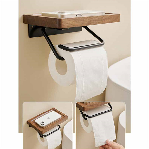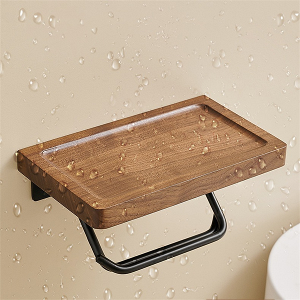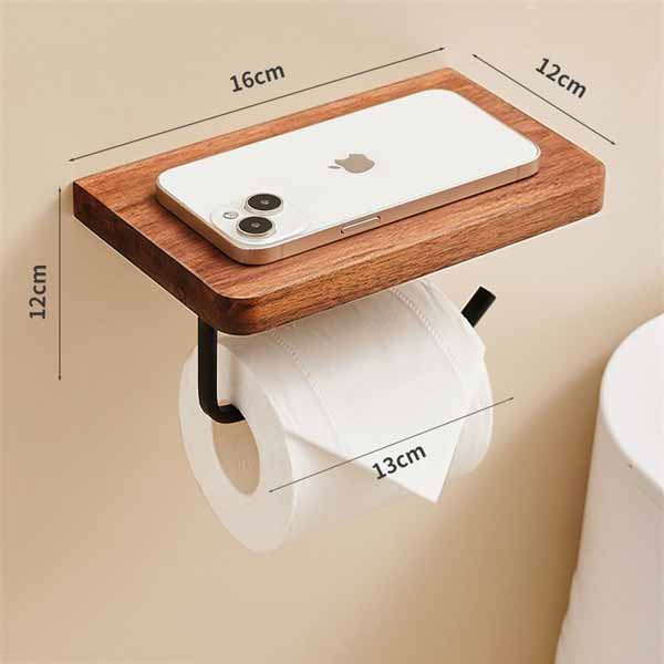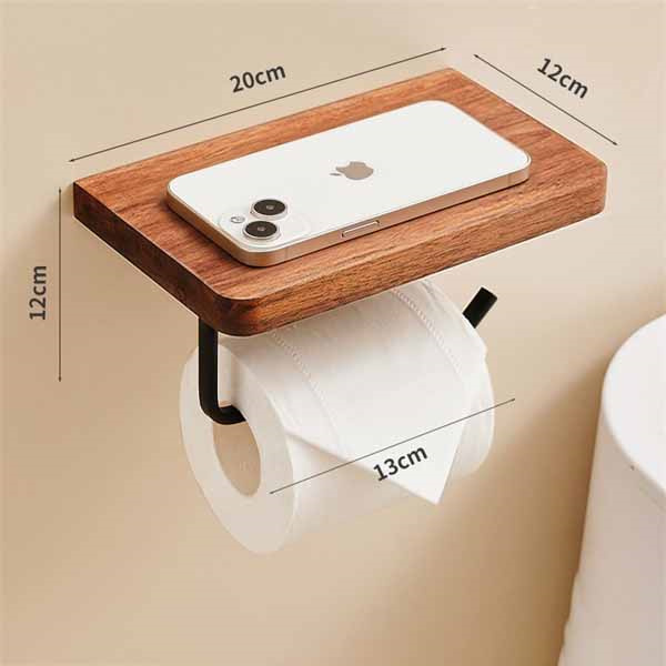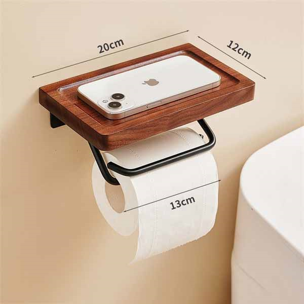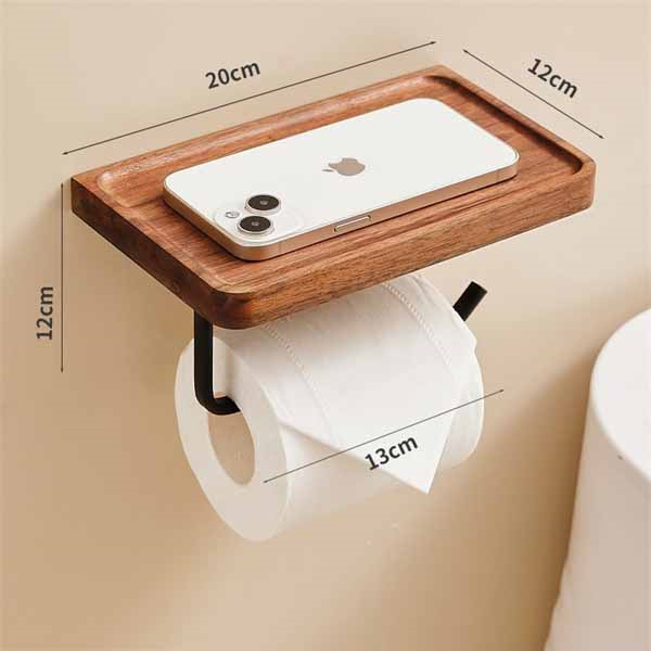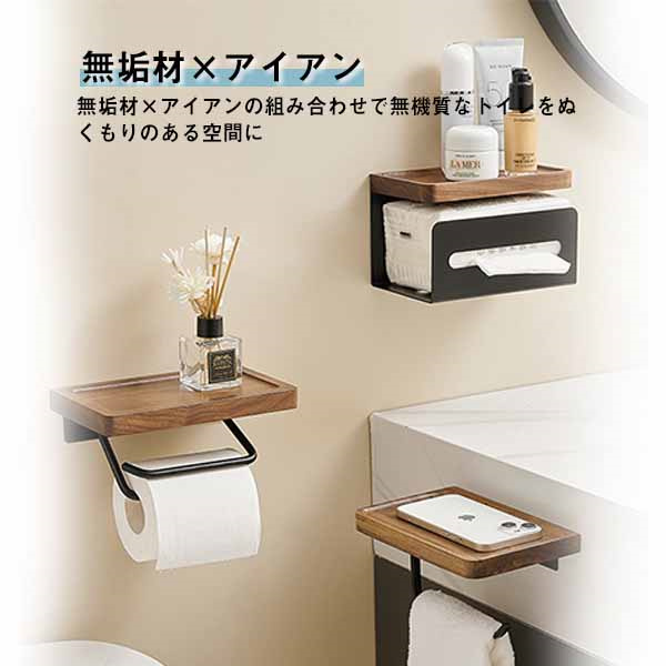 トイレットペーパーホルダー 1連 シングル 木製 おしゃれ 棚付き 天然木 ペーパーホルダー トイレ 紙巻き器 棚 飾り棚 癒し 北欧 アンティーク