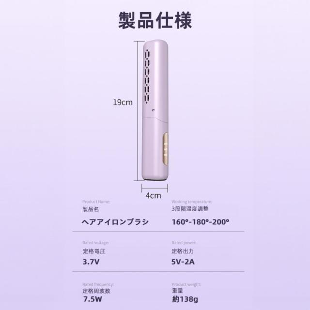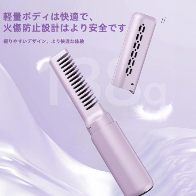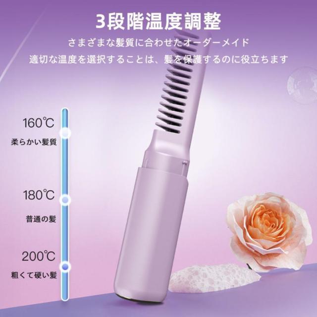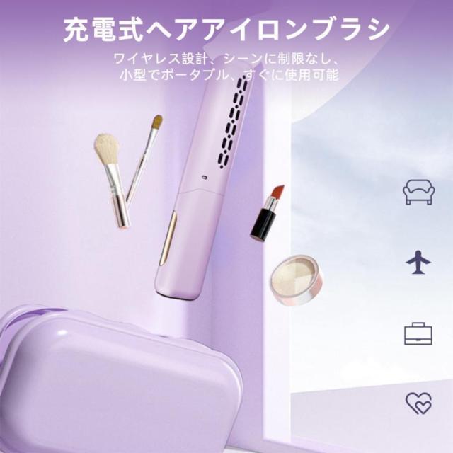 ヘアアイロンブラシ コードレス ミニ ホットヘアブラシ 超軽量160g 3段階温度調節 内巻き 外巻き ストレート 旅行用 携帯用 プレゼント