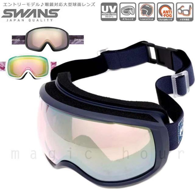 スキーゴーグル メンズ レディース スノー ゴーグル 眼鏡対応 くもり止め ダブルレンズ UVカット 撥水 ミラー レンズ SWANS スワンズ スノボー ヘルメット対応