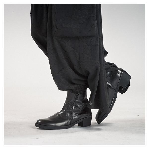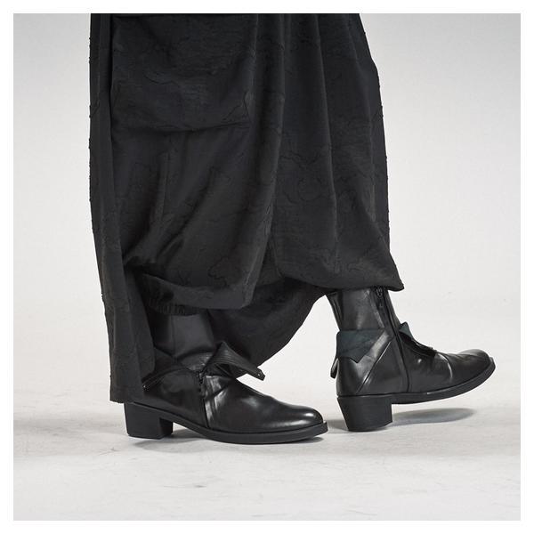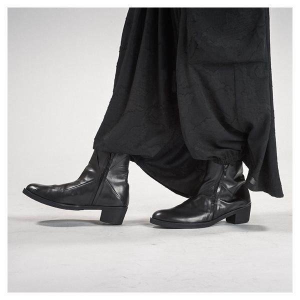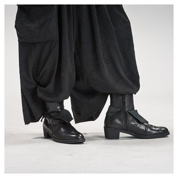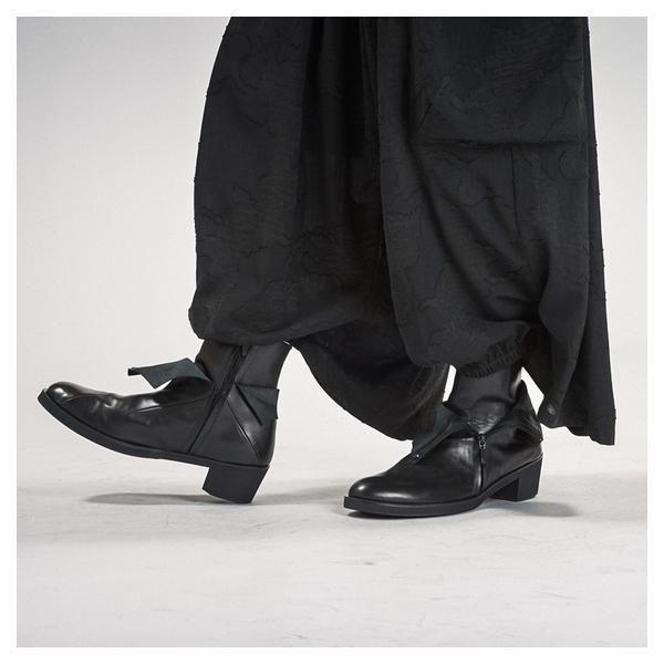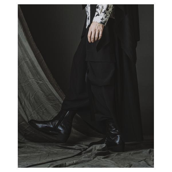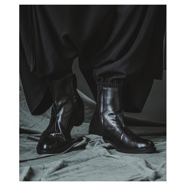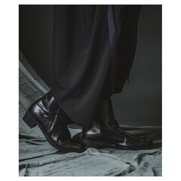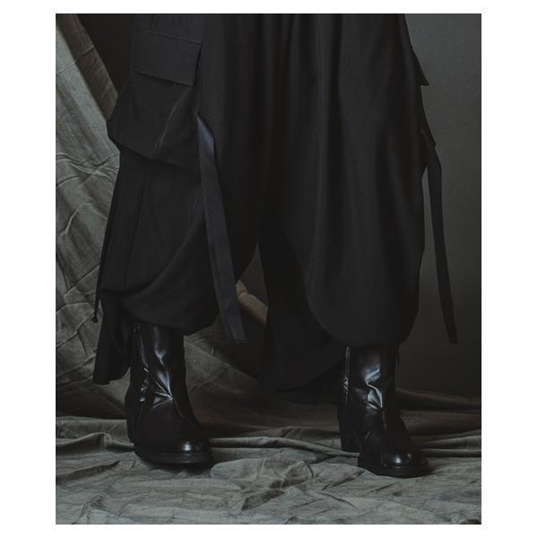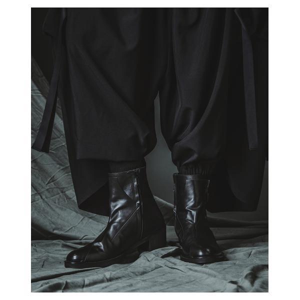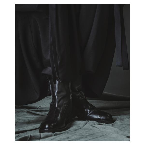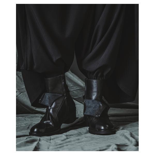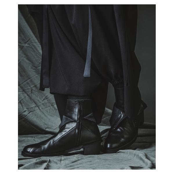 NO ID.が培ってきたシルエット美とレザー表現を融合し、2026年春夏コレクションにおいて足元から世界観を完成させるレイヤードヒールブーツです。