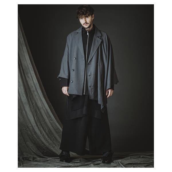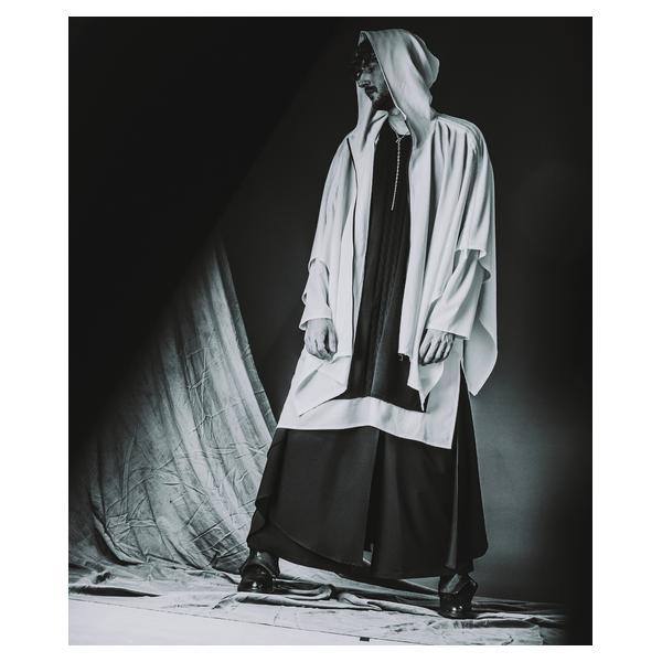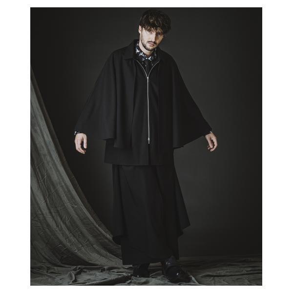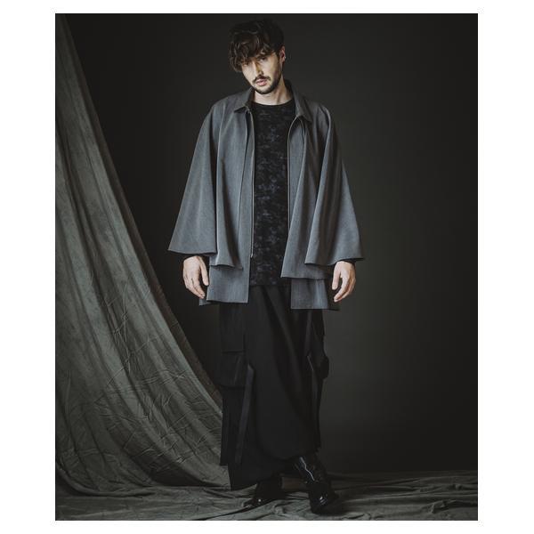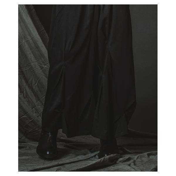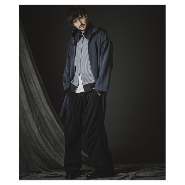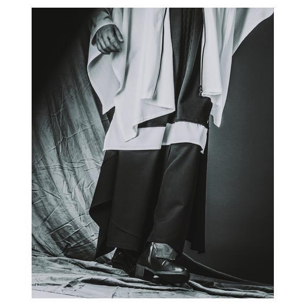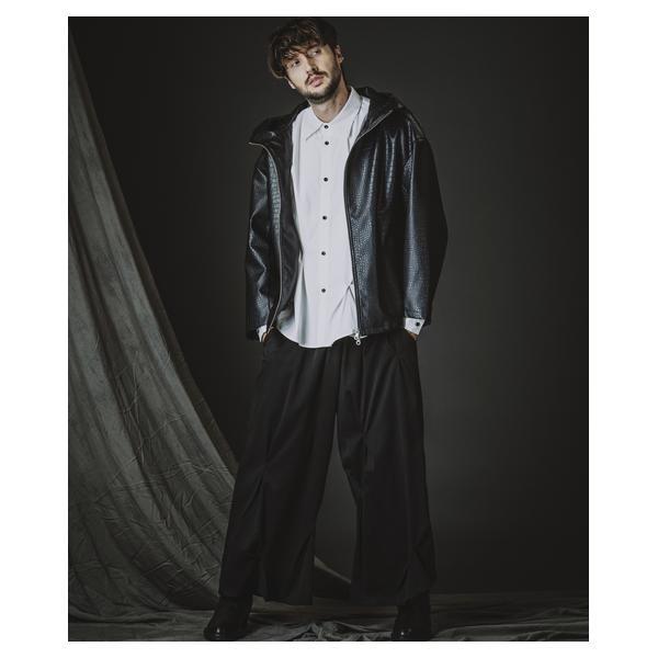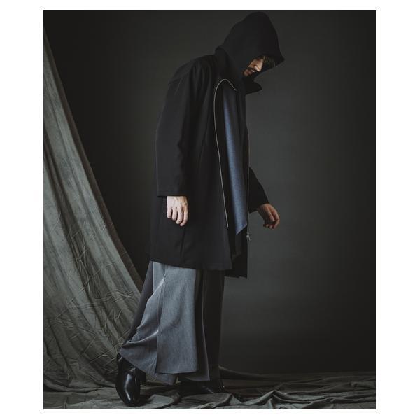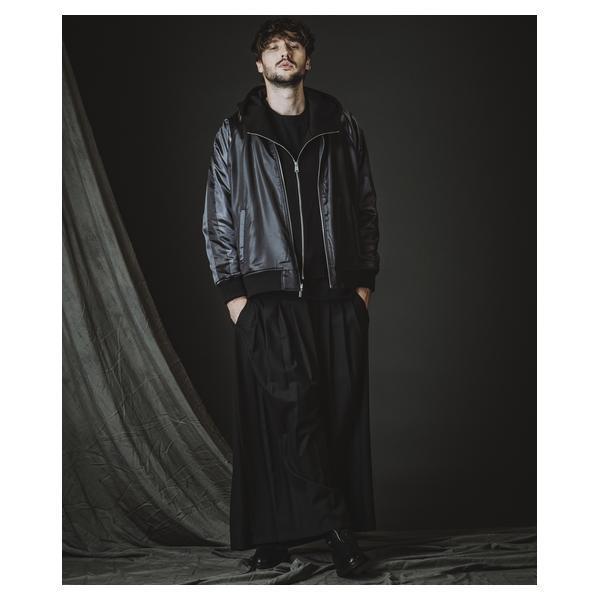 外側に配したレザーは、ファスナーの開閉調整によってドレープの出方やシルエットに細やかなニュアンスを加えることが可能です。