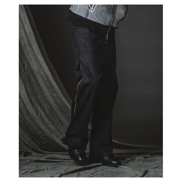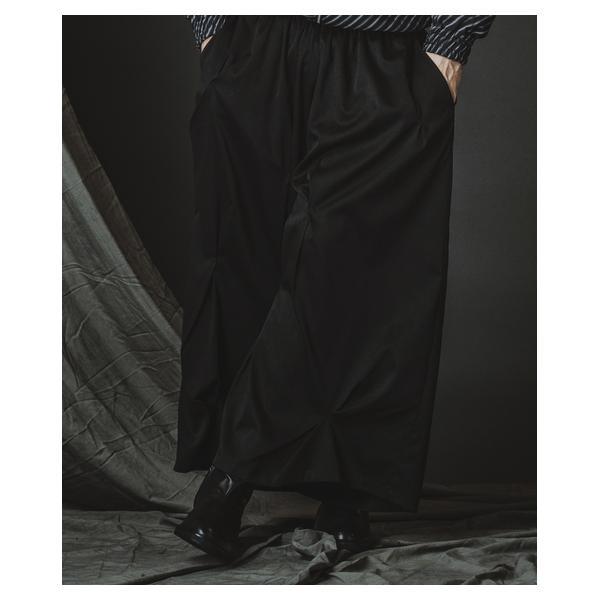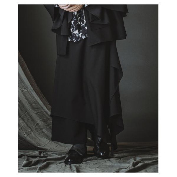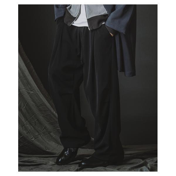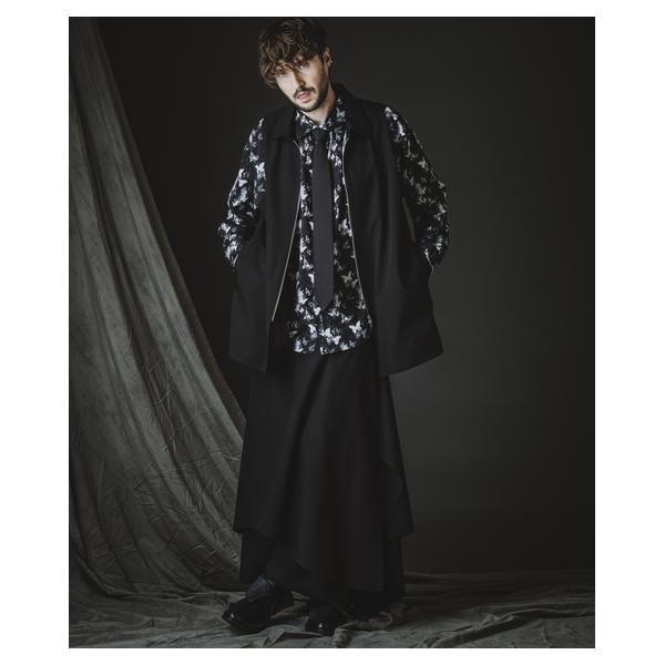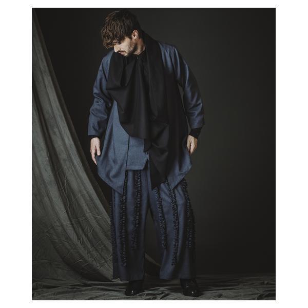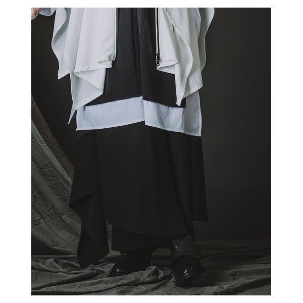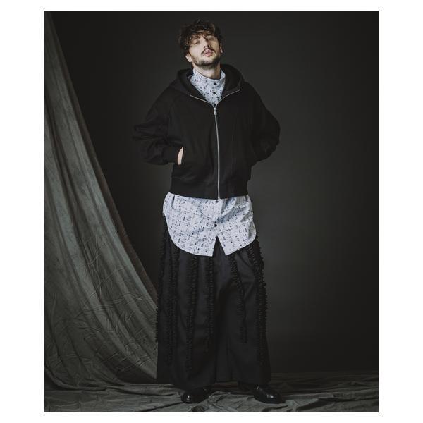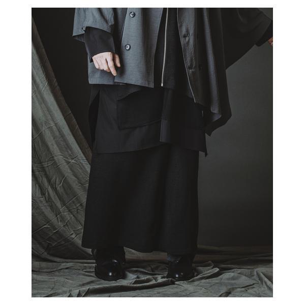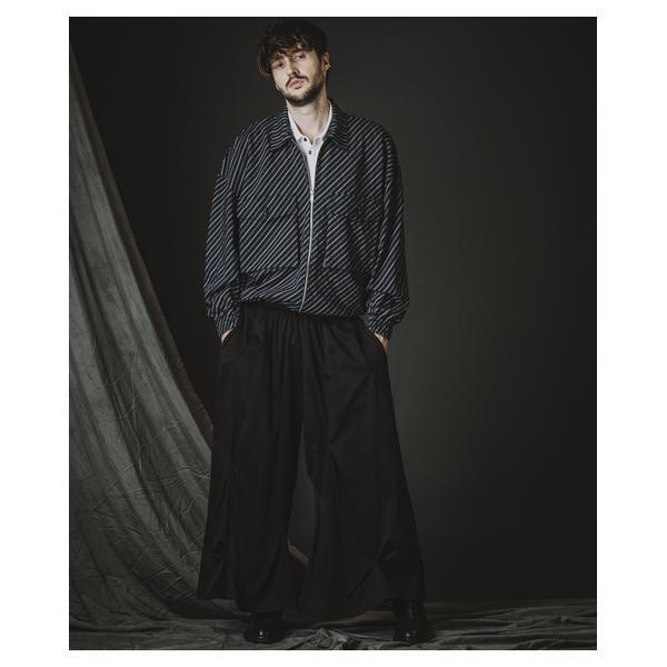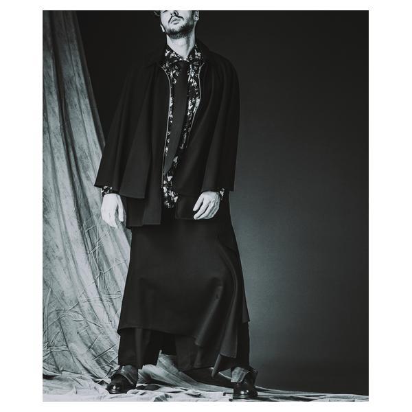 外側に配したレザーは、ファスナーの開閉調整によってドレープの出方やシルエットに細やかなニュアンスを加えることが可能です。