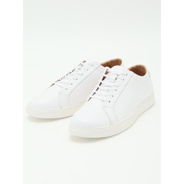 カジュアルからドレスまで幅広い着こなしにマッチするレザースニーカーです。無駄な装飾を省いたシンプルなデザインとレースアップ部分の細い平紐がポイント。足あたりが柔らかいインソールが長時間の歩行をサポートしてくれます。グリップ力のあるアウトソールを採用しているので、滑りやすい場所でも安定感が有ります。カジュアルスニーカーとして普段使いはもちろん、スーツと合わせてビジネスシーンに、オフィスカジュアル用としてスニーカー通勤にもおすすめの一足です。