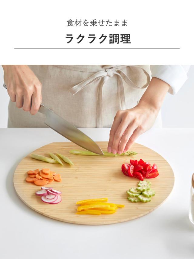 食材を一度に切ることができる、竹製の丸いまな板Lサイズです。