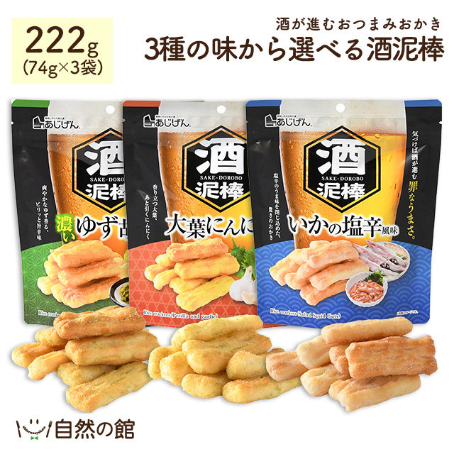 おかき おつまみ 3種の味から選べる 酒泥棒 74g×3袋 送料無料 いかの塩辛 大葉にんにく 柚子胡椒 訳あり 味源 あじげん