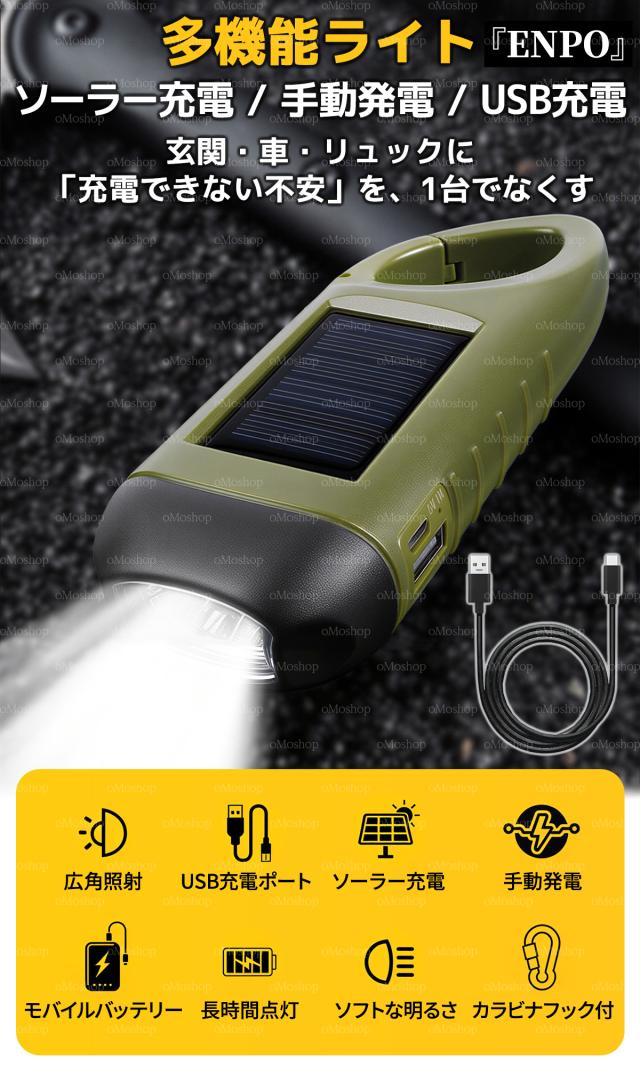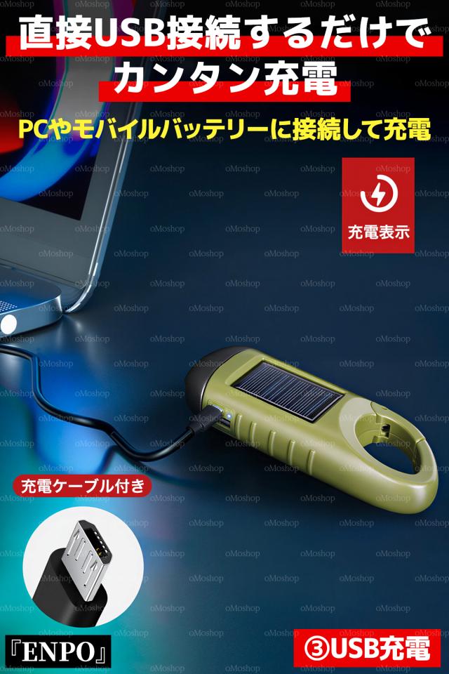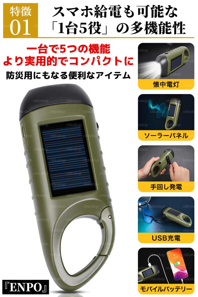 防災ライト 懐中電灯 スマホ充電 モバイルバッテリー LED 強力 充電式 ソーラー 手回し USB 3way充電 太陽光 ダイナモ 電池不要 軽量 コンパクト 防水 防災グッズ 避難 停電 対策 地震 登山 キャンプ アウトドア 夜道 散歩 カラビナ 車中泊 ギフト 1台5役