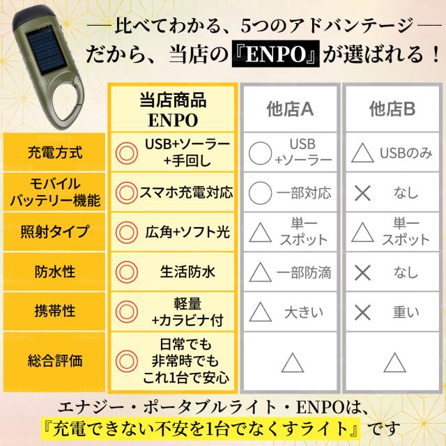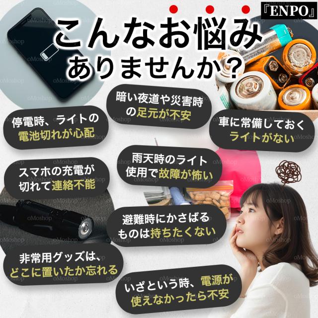 【電池切れの不安をゼロに。1台5役の次世代防災ライト ENPO】