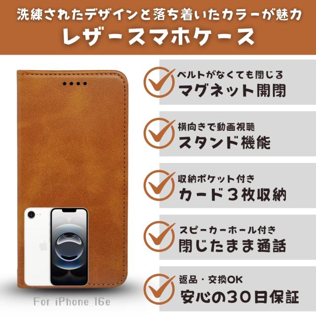iPhone 16e アイフォーン 16e 手帳型 高品質レザー 手帳 カバー スマホケース スタンド機能付き マグネット開閉 カード収納付き