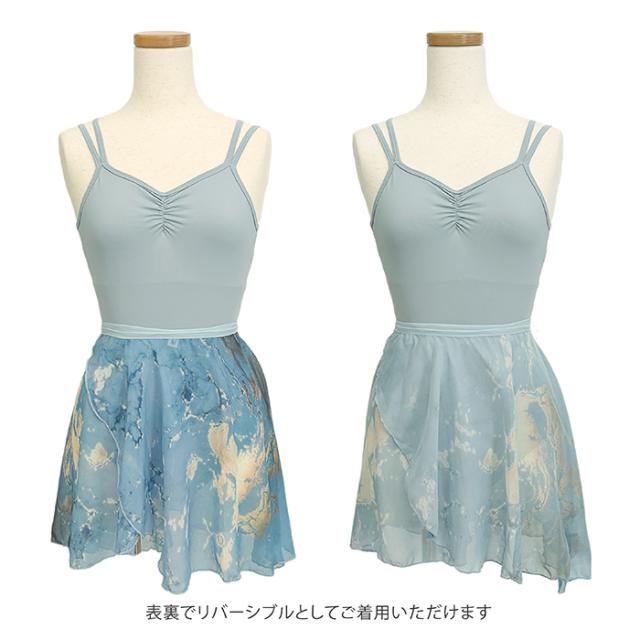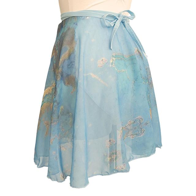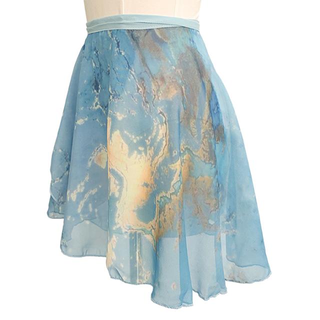 バレエ シフォン 巻きスカート マーブルパターン ジュニア 大人 リバーシブル ラップスカート シフォン 柄付き ストーンマーブル おしゃれ レッスン 練習 着 ブルー 水色 スカイブルー アースカラー 145 150 155 160 165