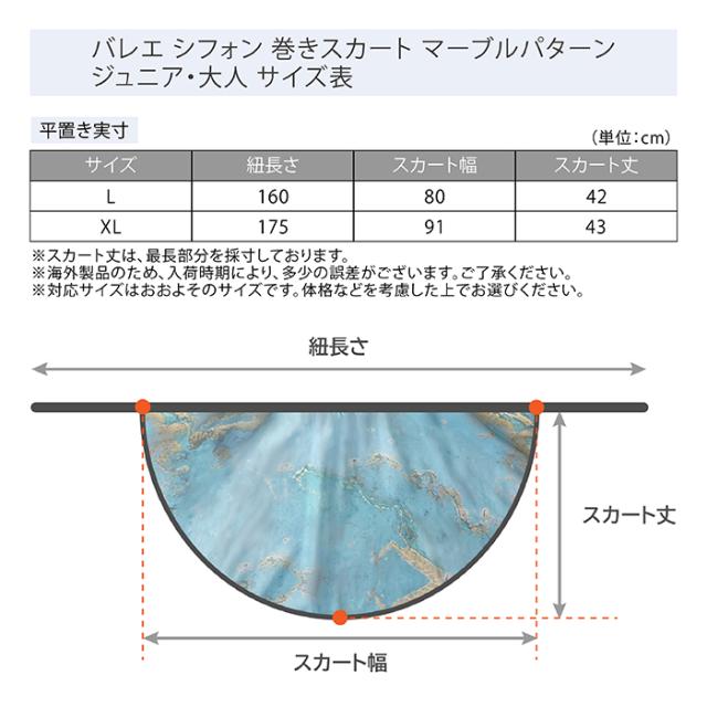商品名:バレエ シフォン 巻きスカート マーブルパターン ジュニア・大人
