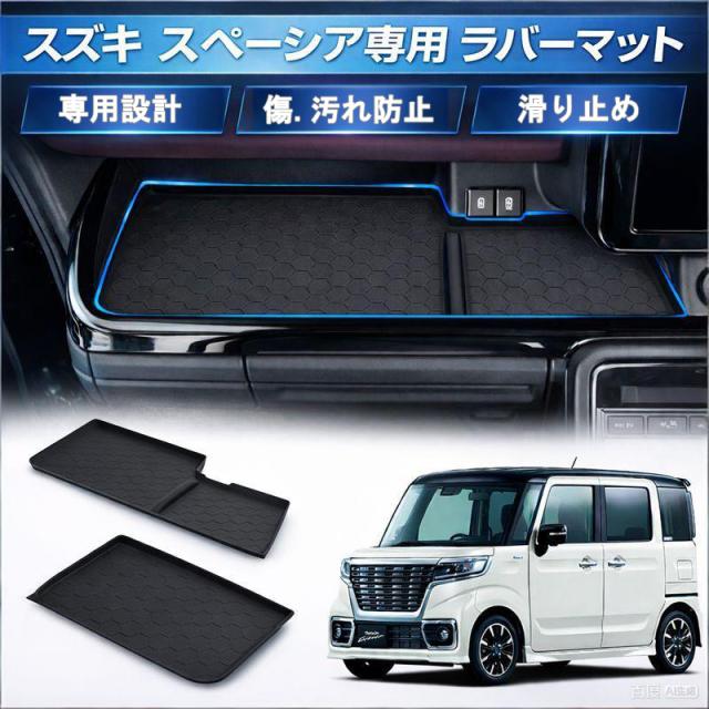 スペーシア 専用 オープントレイマット ラバーマット 滑り止め 防水 傷防止 ノイズ軽減 ブラック カーアクセサリー 助手席・運転席用MK54S MK94S(2023年11月〜)