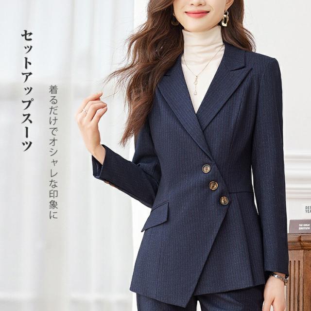 パンツスーツ セットアップ レディース ストライプ シルエット 卒業式 母 服装 フォーマル ワイドパンツ カジュアル ビジネス 通勤 新卒 入学式 フォーマルスーツ 母 服 服装 セレモニースーツ ママ スーツセットアップ 秋冬 長袖 2点セット オフィス 仕事着 シンプル