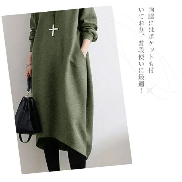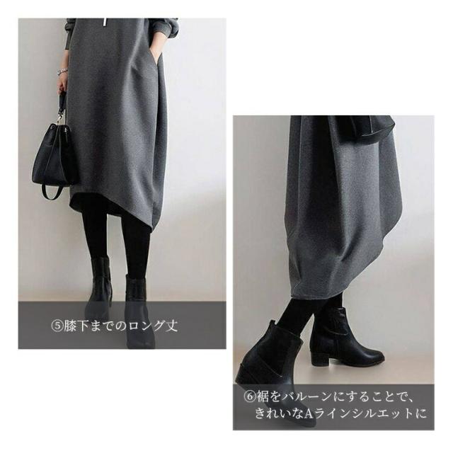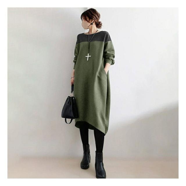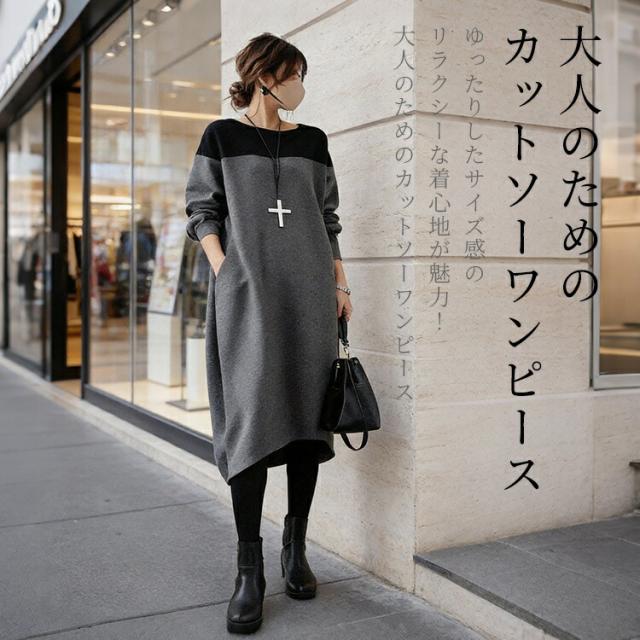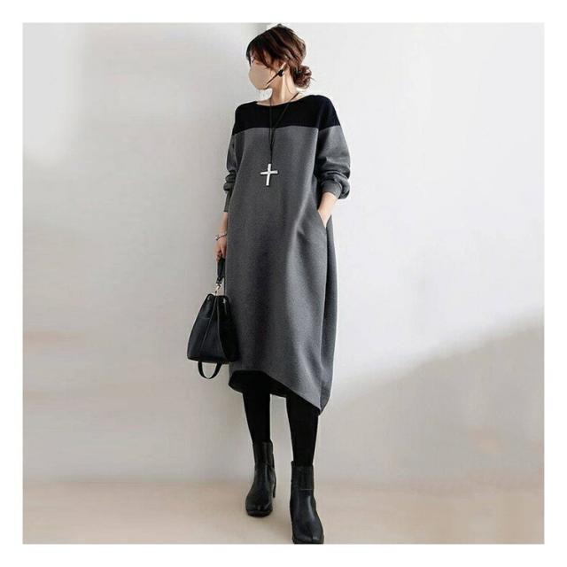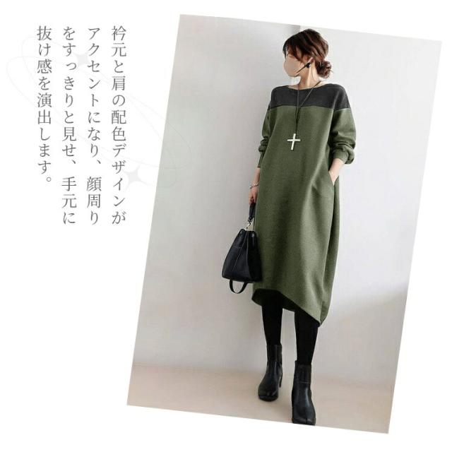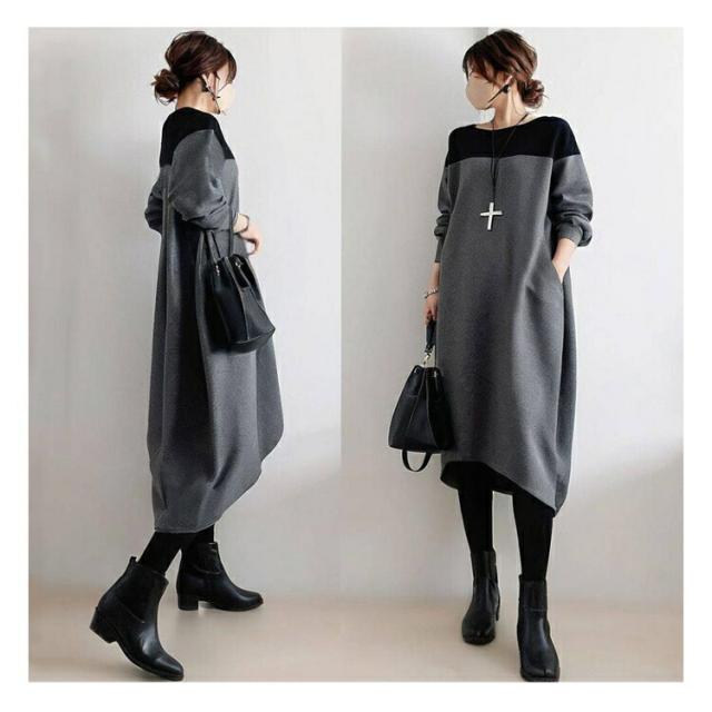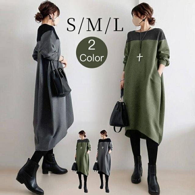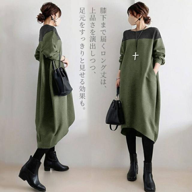 ワンピース レディース 長袖 森ガール 春 秋 冬 きれいめ 20代 30代 40代 50代 ゆったり ロング丈 カジュアル 上品 着心地最高 韓国風 ビッグサイズ ミックス素材 丸首 ゆるふわ 痩せ見え パッチワーク 体型カバー 楽ちん 包み込むシルエット