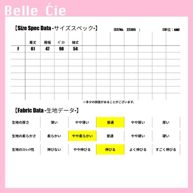 【F】:着丈61 肩幅47 バスト98 袖丈54