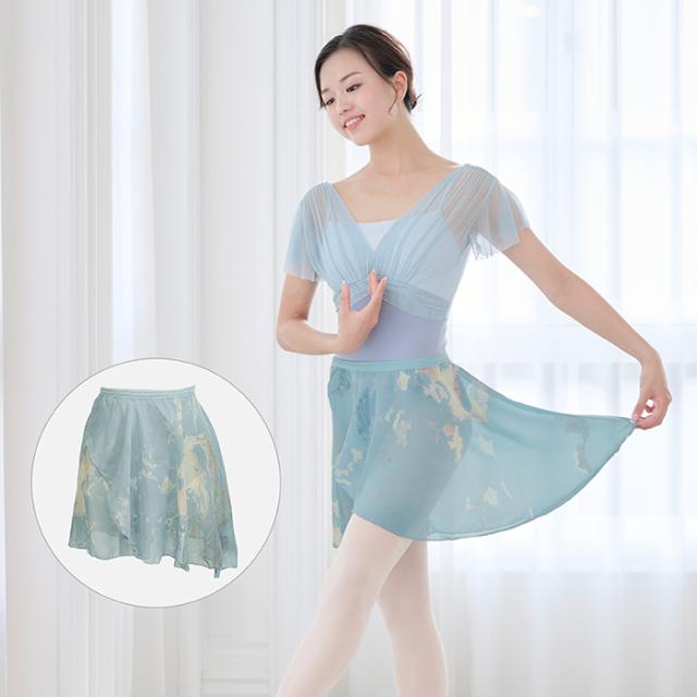 【訳あり商品】バレエ シフォン 巻きスカート マーブルパターン ジュニア・大人