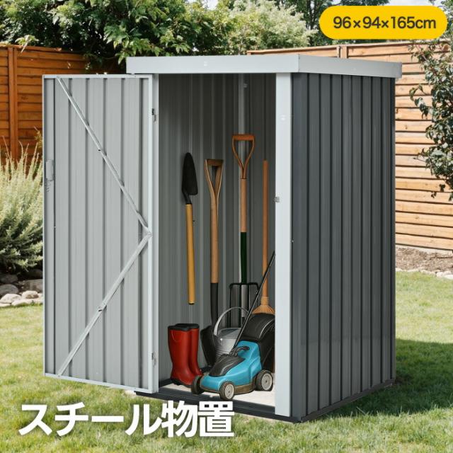 【商品タイトル】: 物置 屋外 スチール物置 コンパクト 大容量 1480L 幅94 奥行96 高さ165 収納庫 亜鉛メッキ 防サビ 施錠対応 鍵付き 物置き ガーデン収納 工具 収納