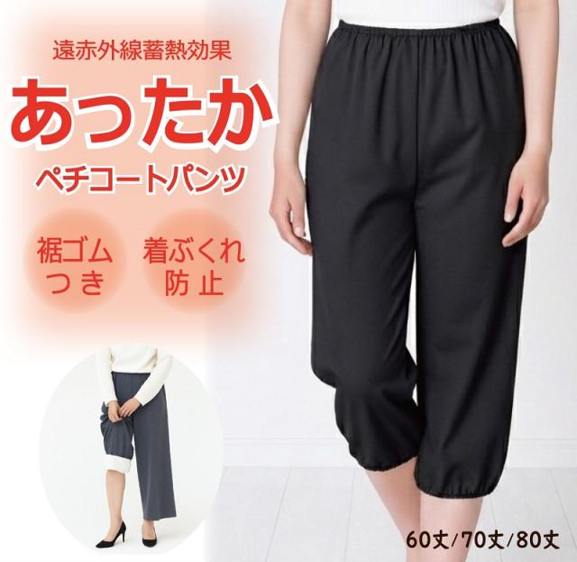 裾ゴム付き あったか ペチコートパンツ 日本製 60丈 70丈 80丈【暖かい 防寒 冷え性対策 秋冬 トイレ キュロットパンツ ペチコート ペチパンツ ガウチョパンツ ワイドパンツ タップパンツ】