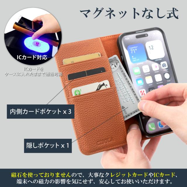 日本メーカーCIBOLA発売の高級牛革・本革 iPhone SE3 / SE2 / iPhone7 / iPhone8 手帳型 スマホケースです【マグネットなし式】。?機種毎の専用デザイン・耐衝撃・横置きスタンド・カードポケット付き。