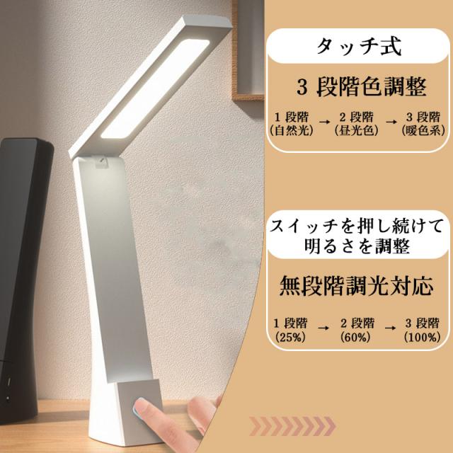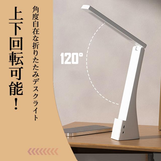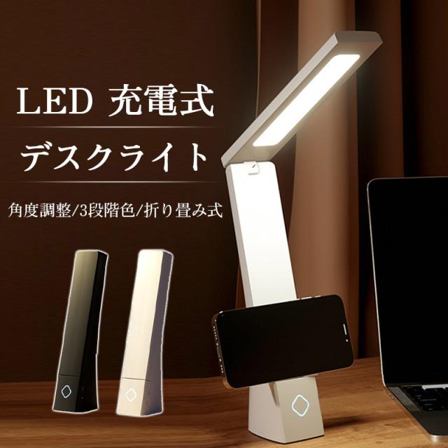 デスクライト コードレス led おしゃれ 充電式 明るい 電気スタンド卓上ライト 折り畳み式 省エネ 角度調整 3 段階色 読書 スマホスタンド