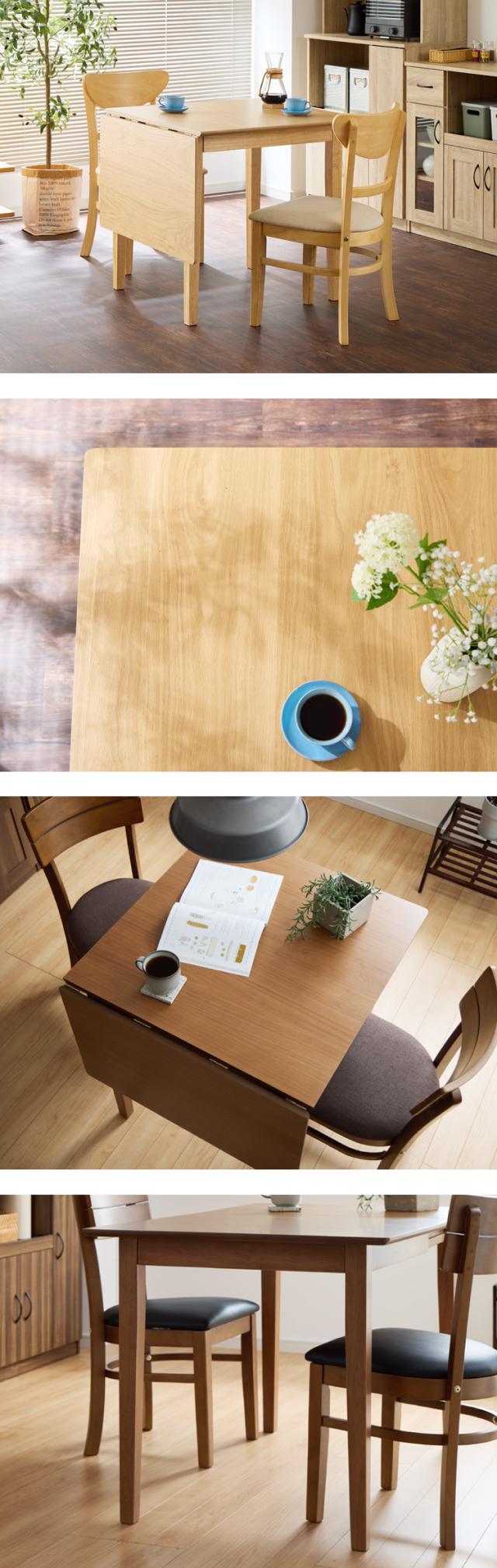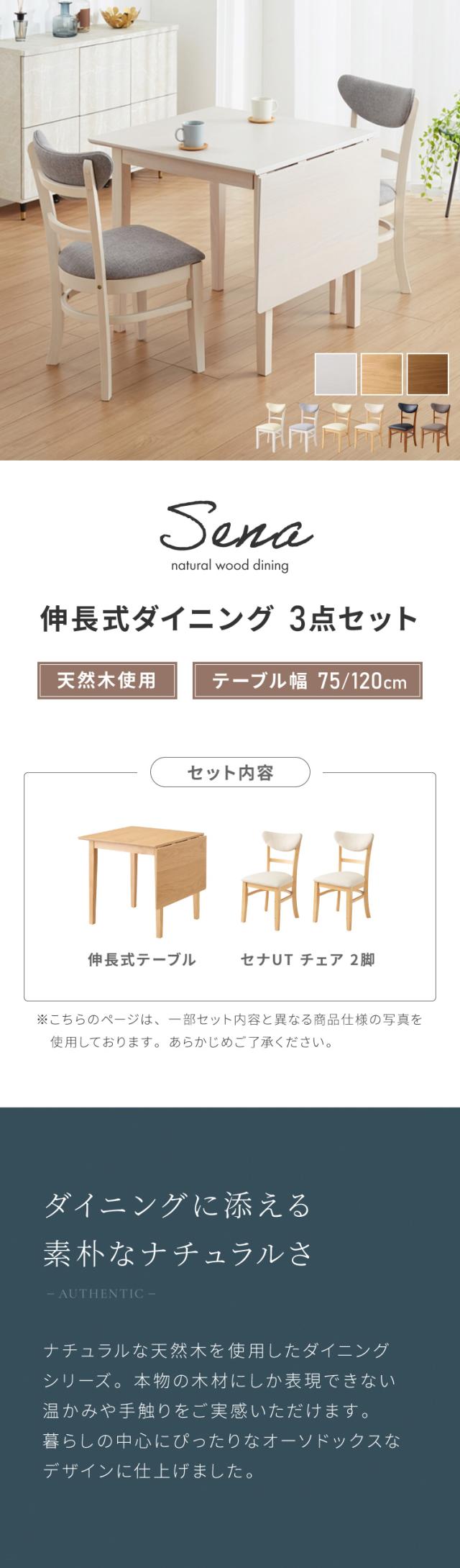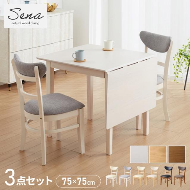 伸縮ダイニングテーブル 3点セット 75cm 120cm 背もたれウレタン 天然木 2人掛け 4人掛け ダイニングチェア セナUT バタフライテーブル 木製 ダイニングセット 折りたたみ 伸長式ダイニングテーブル【送料無料】