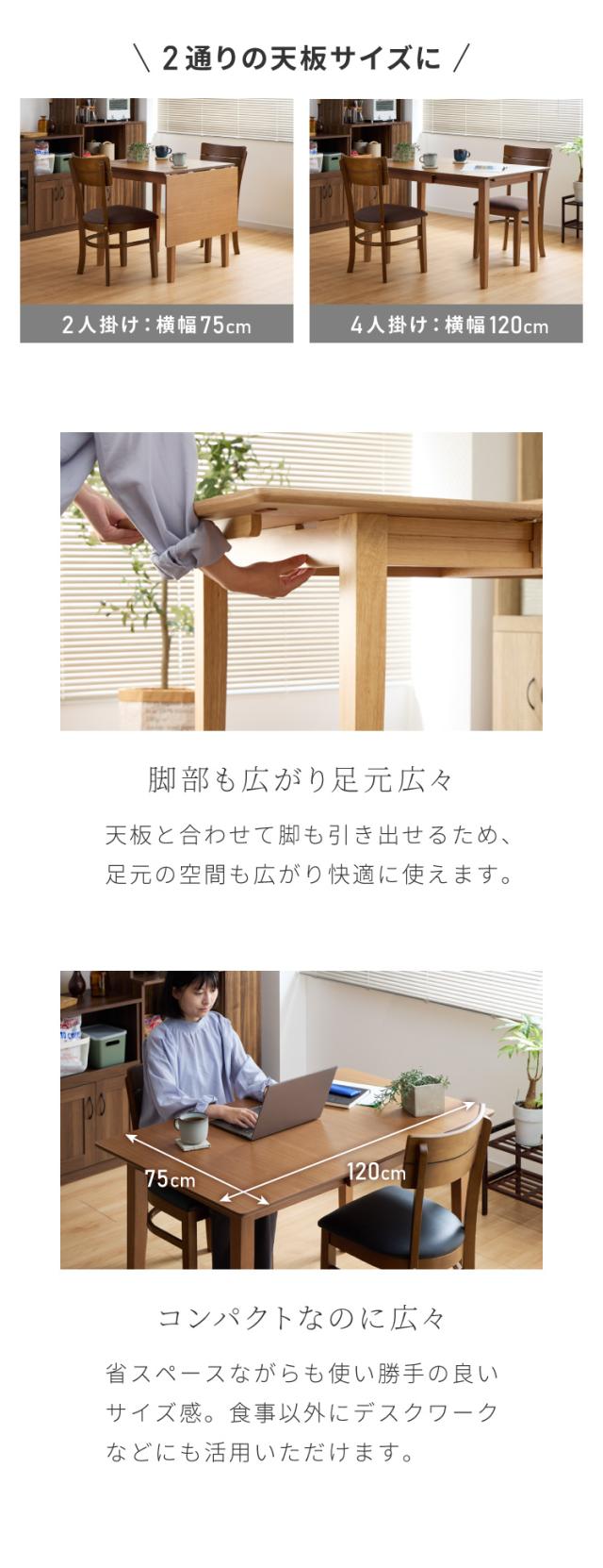 ・テーブルは用途に合わせて75cmと120cmに伸縮できます。
