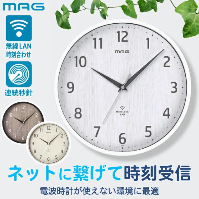 掛け時計 Wi-Fi 無線LAN ネット時刻同期 電波時計が届かない部屋に 静音 スイープ秒針 木目調 おしゃれ 壁掛け 2.4GHz対応 見やすい 直径29cm 正確 自動時刻修正 シンプル ナチュラル 北欧 オフィス 学校 施設 寝室 マンション ノア精密 MAG 新生活 プレゼント ギフト