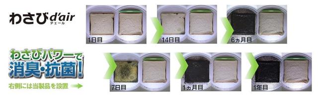 わさびd'airを使用することにより臭いの元となるバクテリアを100分の1にすることができます。