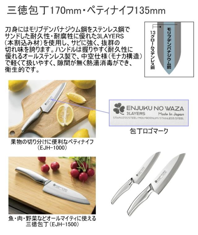 ●フライパン・いため鍋・玉子焼き 本体:鉄(底厚1.6mm、窒化処理) ハンドル:天然木(ブナ材、ウレタン塗装) 取付金具:鉄(クロムメッキ) ●包丁 刀身:ステンレス刃物鋼(心材:モリブデンバナジウム鋼) ハンドル:18-8ステンレス鋼 |