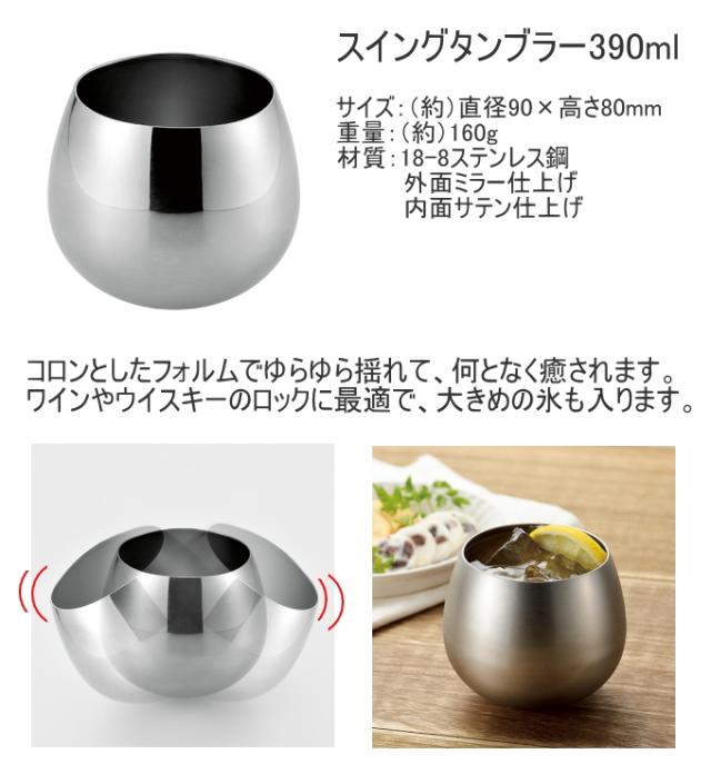 燕熟の技 スイングタンブラー 390ml 2個セット EJES-700 日本製 送料無料 タンブラー コップ ステンレス製 スイング 揺れる 丸み ワイン ウイスキー お祝い 贈り物 プレゼント お土産 2個セット 燕熟の技 よこやま 新潟県燕市