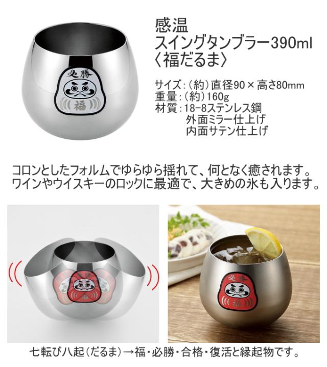 燕熟の技 感温スイングタンブラー 390ml 福だるま 2個セット EJKS-1201 日本製 送料無料 だるま ダルマ タンブラー コップ ステンレス製 揺れる 丸み ワイン ウイスキー 2個セット お祝い 贈り物 プレゼント お土産 よこやま 新潟県燕市