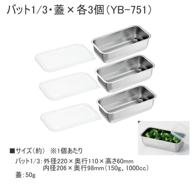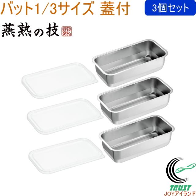 燕熟の技 バット1/3・蓋×各3個 YB-751 日本製 ステンレス製 バット 角バット 蓋付き 3個セット 保存容器 冷蔵 冷凍 作り置き キッチン用品 調理用品 燕熟の技 よこやま 新潟県燕市