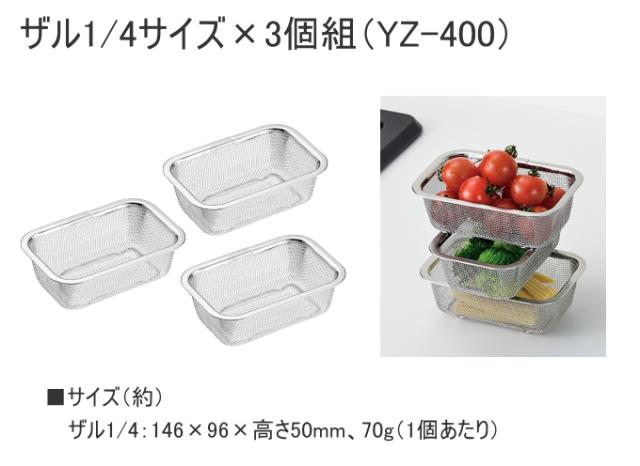 燕熟の技 ザル1/4サイズ×3個組 YZ-400 日本製 ステンレス製 ザル ざる 角型 ユニットザル 脚付き 3個セット 野菜 水切り キッチン用品 調理用品 燕熟の技 よこやま 新潟県燕市