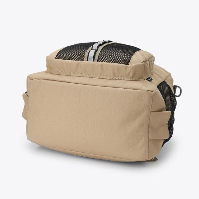 独自のはっ水機能「オムニシールド」が雨や汚れを軽減し、天候を気にせず使える安心感が魅力。メインコンパートメントに加え、フロントのメッシュポケットや両サイドのボトルポケットなど収納力も充実。