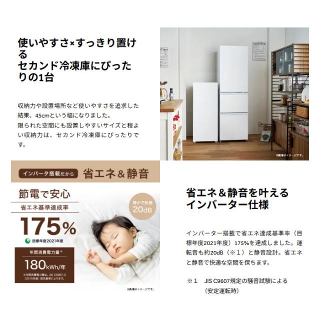 ■種類: 前開き式冷凍庫 ■容量(L): 87 ■ドア数: 1 ■定格内容積(L): 87 <78> ※<>内は食品収納スペースの目安 ■電源電圧(V): 単相100(50Hz/60Hz共用) ■定格消費電力(W): 電動機 42 電熱装置 116 ■外形寸法(mm): 幅450×奥行585×高さ1075 ■据付必要奥行寸法(mm): 635 ■質量(kg): 32.0 ■冷却方式: ファン式 ■フリーザー性能: フォースター ■霜取方式: 自動 ■運転音※: 約20dB ※JIS C9607規定の騒音試験による(安定運転時) ※記載は商品仕様の一部です。仕様説明不足等の理由での返品はできません。特に適合等は必ずご確認ください。