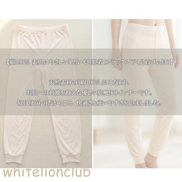 【アウトレット】思いやり肌着 極肌生活 スラックス下 綿100% 足首リブ M/L/LL/3L | 腰ゴム取替可 ロング丈 無地 レディース 綿 ズボン下 肌着 インナー