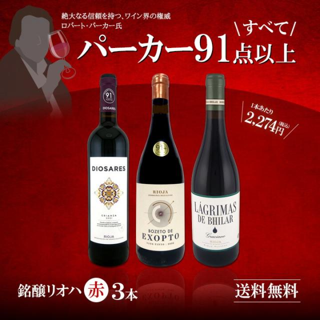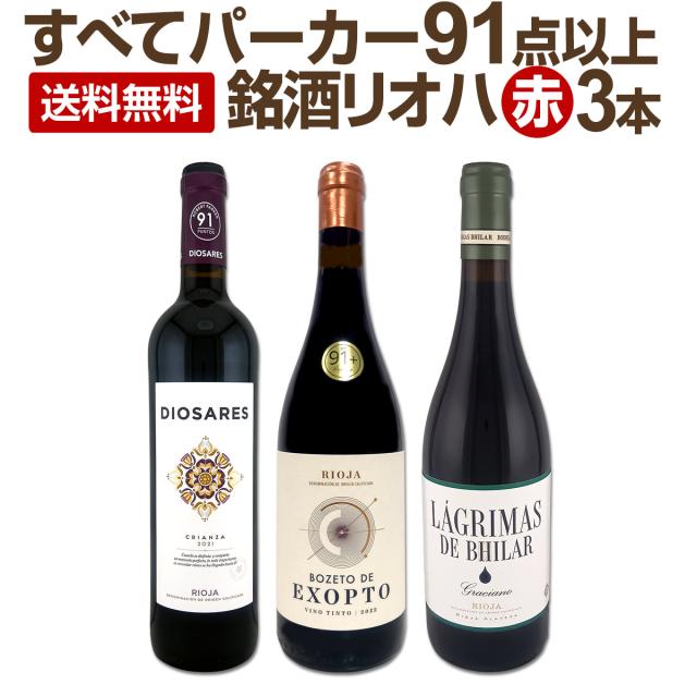 【送料無料】ぜんぶパーカー91点以上!しかも銘醸リオハだけ!厳選極旨赤ワイン3本セット!