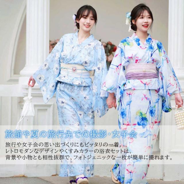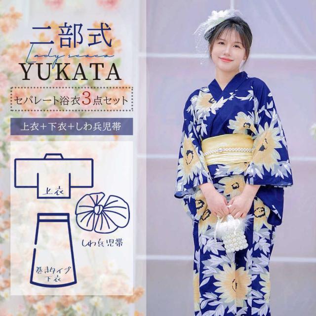 浴衣 セパレート 二部式 浴衣 上下セット 巻きタイプ 浴衣セット 兵児帯 大人 レディース おしゃれ 可愛い 簡単 3点セット 夏 フリー くすみ 大人 レトロ 可愛い おしゃれ 10代 20代 30代 42代