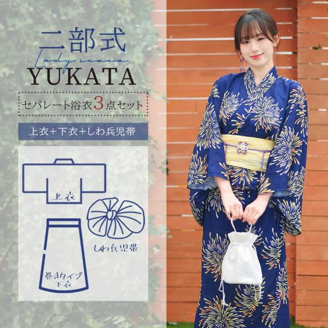 浴衣 セパレート 二部式 浴衣 上下セット 巻きタイプ 浴衣セット 兵児帯 大人 レディース おしゃれ 可愛い 簡単 3点セット 夏 フリー くすみ 大人 レトロ 可愛い おしゃれ 10代 20代 30代 44代