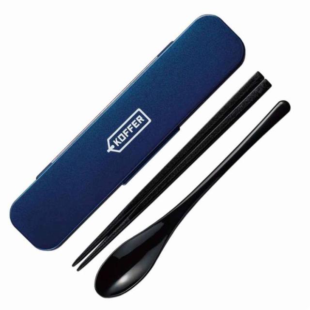 日本製 コンビセット 箸 スプーン 18cm KOFFER ネイビーメタリック(代引不可)