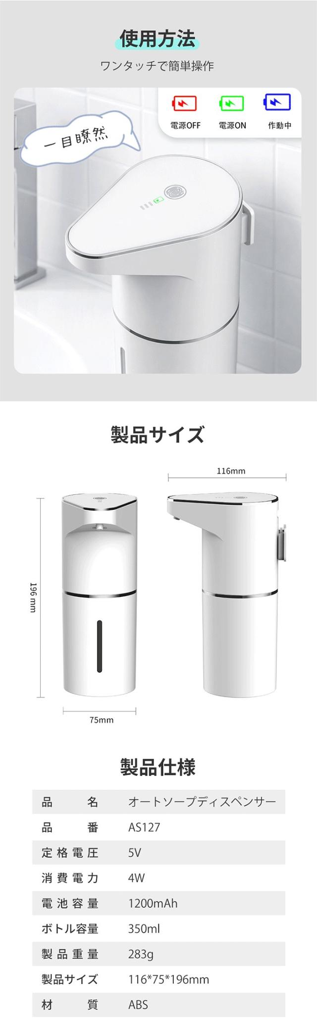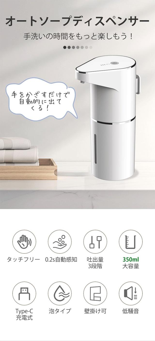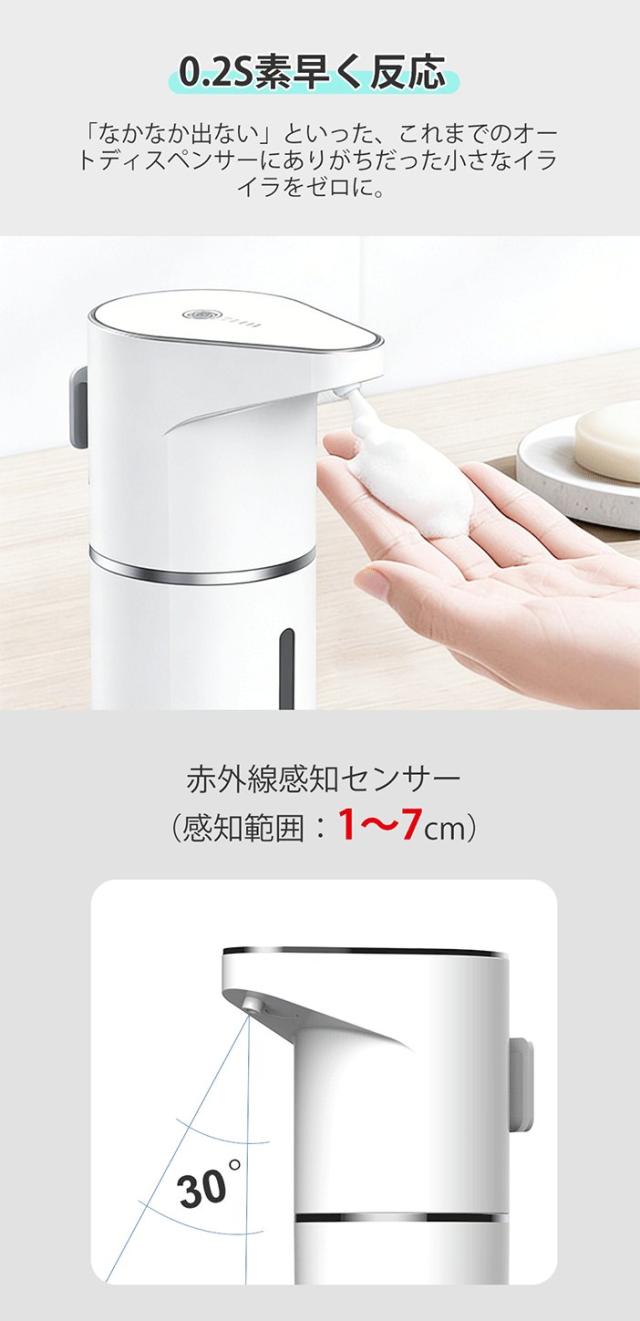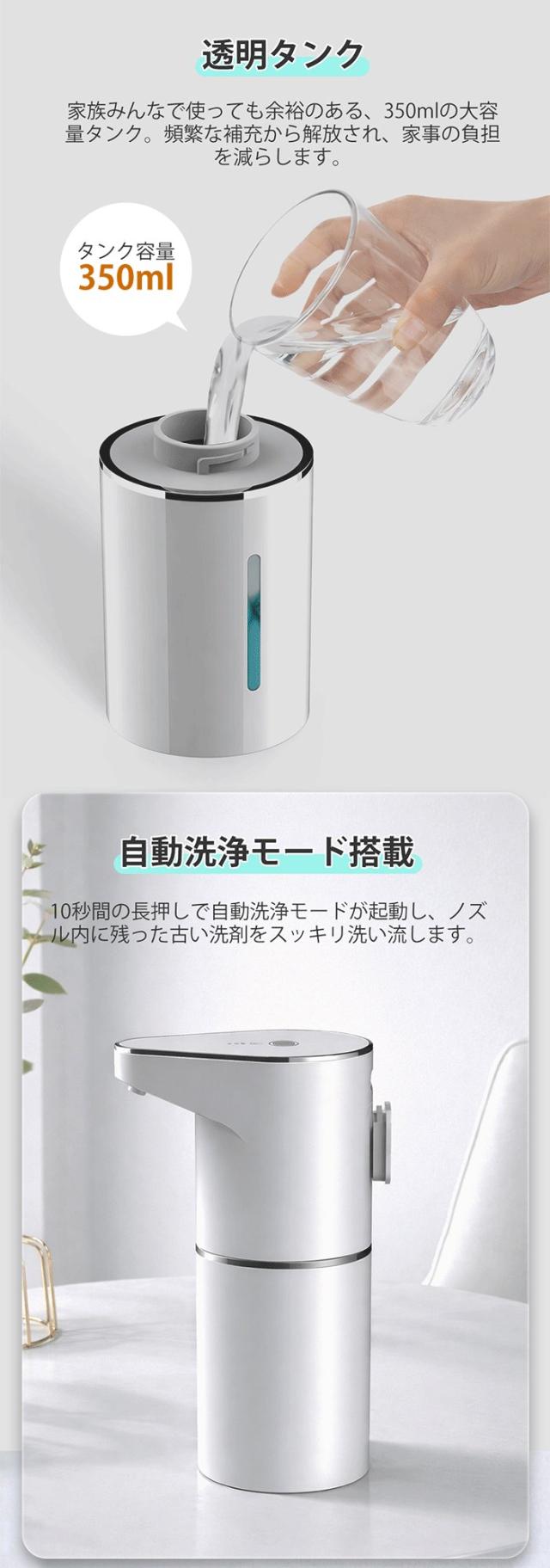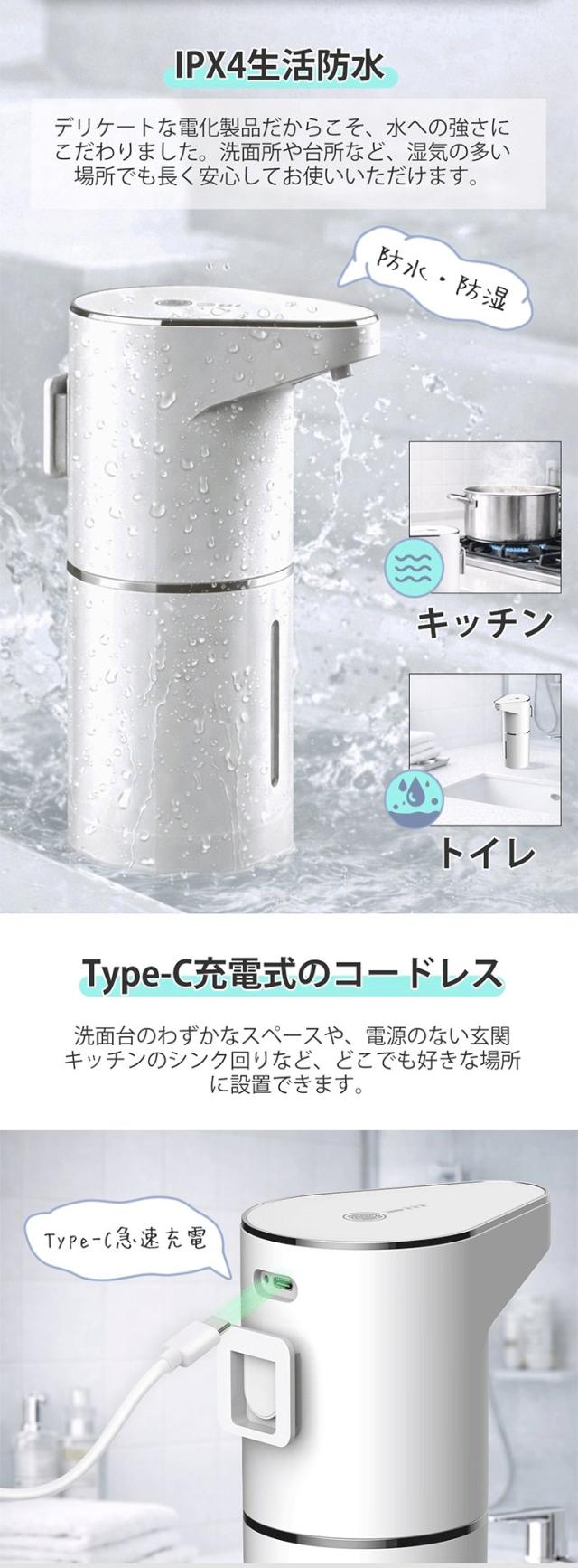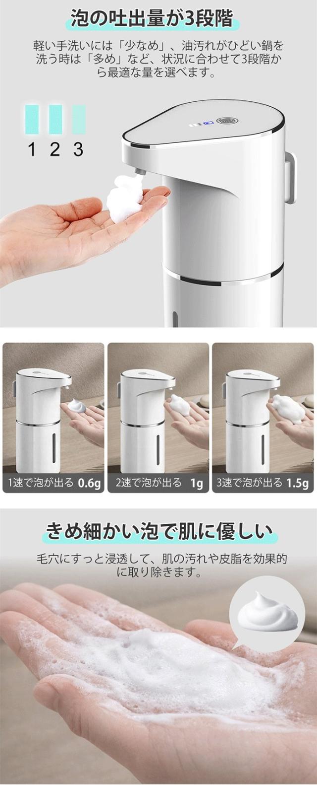 ディスペンサー 泡 自動 ソープディスペンサー 壁掛け可 充電式 オートディスペンサー 3段階吐出量 自動洗浄モード 食器用洗剤対応 IPX4防水 キッチン 洗面所 お手洗い おしゃれ 新生活 ギフト