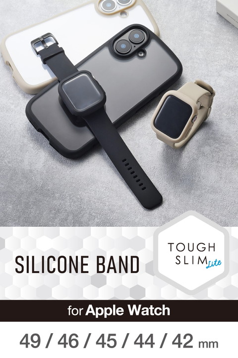 汗や水に強いシリコン素材と、腕にやさしくフィットする形状設計で、スポーツでも日常でも快適に使えるApple Watch用TOUGH SLIMシリコンバンドです。