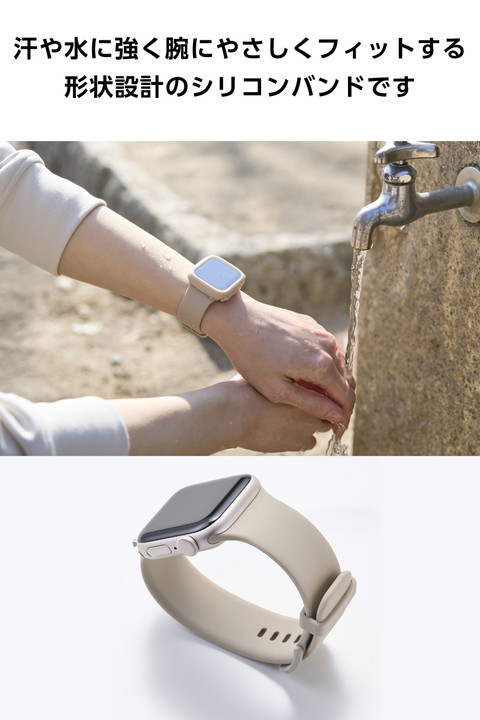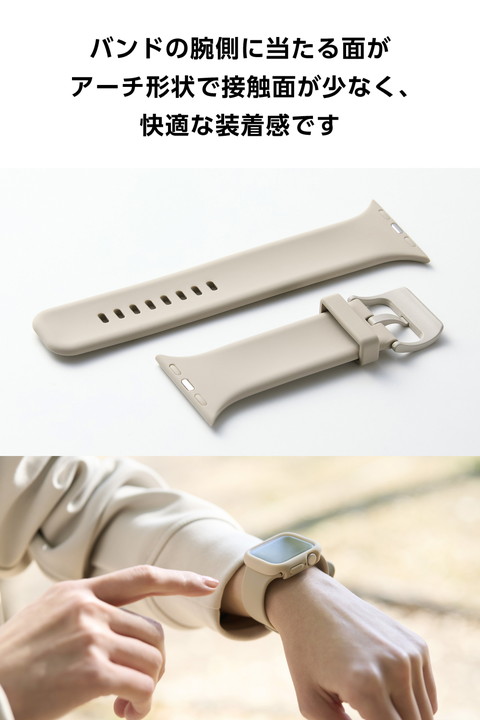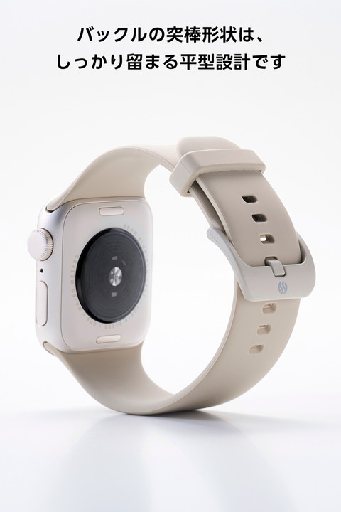 汗や水に強いシリコン素材と、腕にやさしくフィットする形状設計で、スポーツでも日常でも快適に使えるApple Watch用TOUGH SLIMシリコンバンドです。![]() ■汗や水に強いシリコン素材と、腕にやさしくフィットする形状設計で、スポーツでも日常でも快適に使えるApple Watch用TOUGH SLIMシリコンバンドです。 ■汗や水に強いシリコンバンドで、スポーツや日常使いにもぴったりです。 ■汚れが目立ちにくく、簡単なお手入れで清潔さを保てます。 ■しなやかなシリコンバンドが腕にやさしくフィットします。 ■バンドの腕側に当たる面をアーチ形状とすることで、腕との接触面積を抑え、快適な装着感を維持します。 ■ラグ部分はバンドから続く一体形状で成形され、端末とバンドをしっかり接続します。 ■バックルの突棒形状は、しっかり留まるように平型設計を採用しています。 ■バンドを端末に装着したままで画面の確認、本体の操作、各種ボタン操作、純正の磁気充電ケーブルへの設置が可能です。 ![]() ■対応機種:Apple Watch Series 11/10 [46mm]/Apple Watch Ultra 3/2/Ultra [49mm]/Apple Watch Series 9/ 8/7 [45mm]/Apple Watch SE (第3世代)/SE (第2世代)/SE/Series 6/5/4 [44mm]/Apple Watch Series 3/2/1 [42mm] ■セット内容:バンド本体×1 ■材質:シリコン、亜鉛合金 ■カラー:ベージュ |